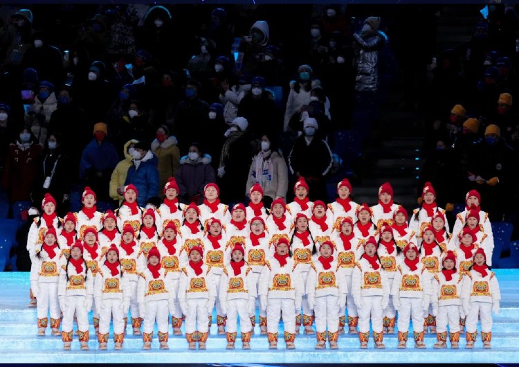 2月4日晚,第二十四届冬季奥林匹克运动会开幕式在北京国家体育场举行。图为孩子们演唱奥林匹克会歌。新华社记者李安摄