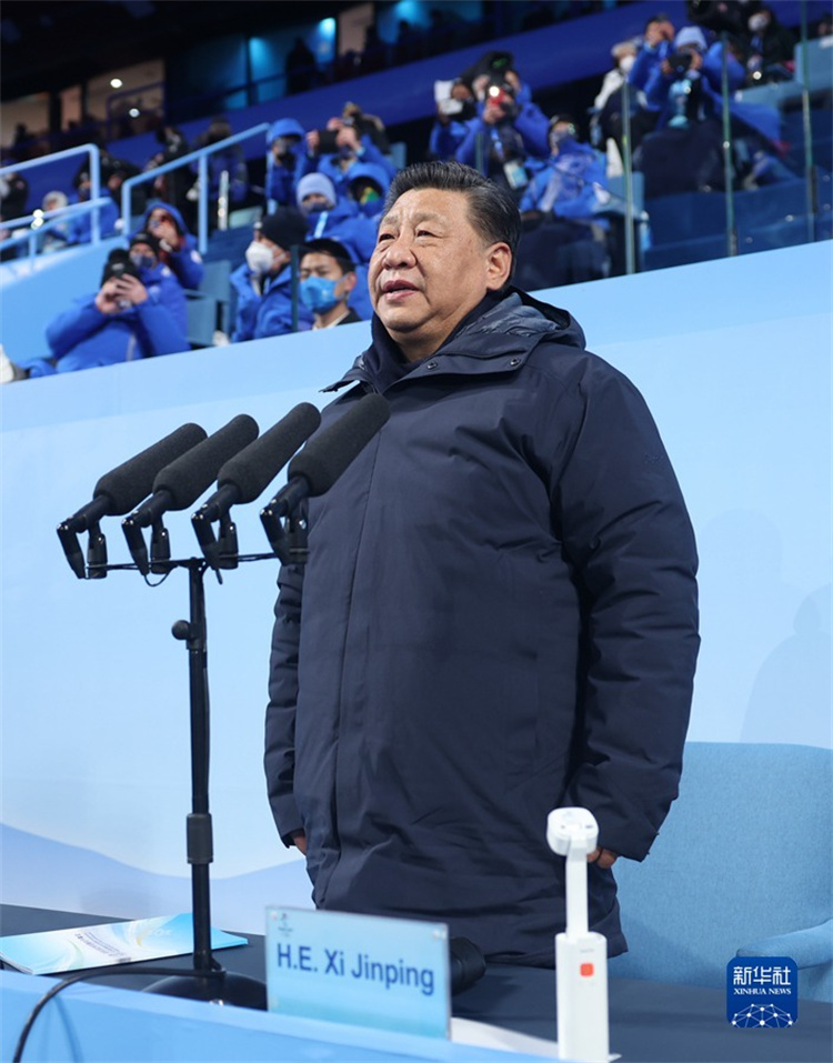2月4日晚,北京第二十四届冬季奥林匹克运动会开幕式在国家体育场隆重举行。国家主席习近平出席开幕式并宣布本届冬奥会开幕。新华社记者 鞠鹏 摄