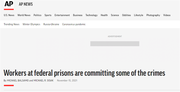美联社2021年11月发布关于美国监狱工作人员犯罪的调查。图片来源:美联社网站截图