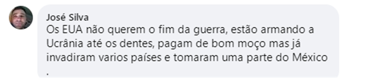 海外网友在人民网葡文社交媒体账号留言评论:“美国不想结束这场战争,他们已经武装到了牙齿,满嘴谎言。”