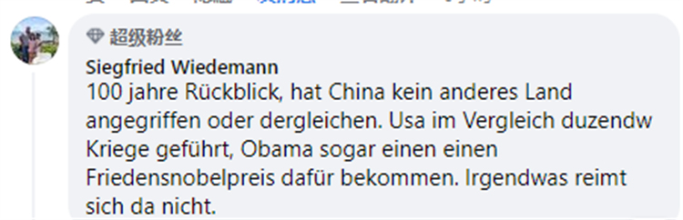 海外网友在人民网德文社交媒体账号留言评论。图片来源:网络截图