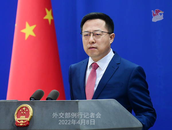 人民网北京4月8日电 据外交部网站消息,外交部发言人赵立坚主持8日例行记者会。记者会实录如下: