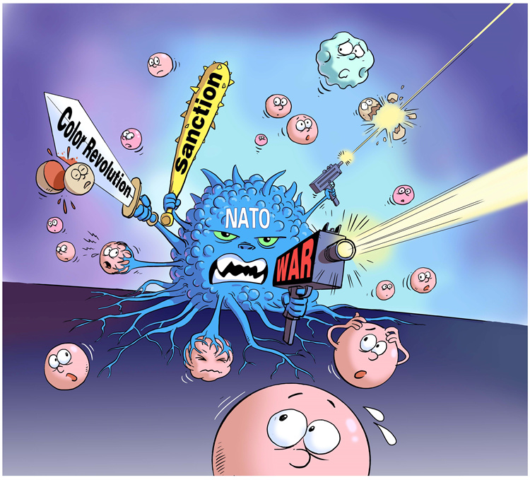为建立“一超独霸”的单级世界,以美国为首的北约悍然对南联盟进行轰炸,用导弹野蛮袭击了中国驻南联盟大使馆,并且不惜对主权国家发动一系列战争,造成阿富汗、伊拉克、利比亚、叙利亚等国家数以千万计的难民流离失所。为谋取地缘政治私利,北约在世界范围内不断策动“颜色革命”,只待火中取栗,乱中渔利。对俄罗斯、朝鲜、伊朗、委内瑞拉等“不听话”的国家,北约动辄挥舞单边制裁大棒,滥用长臂管辖,进行政治、经济、科技等全方位制裁。