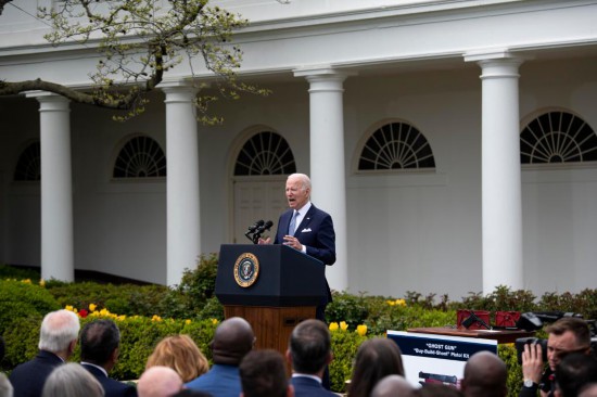 4月11日,美国总统拜登在华盛顿白宫发表讲话。新华社记者刘杰摄