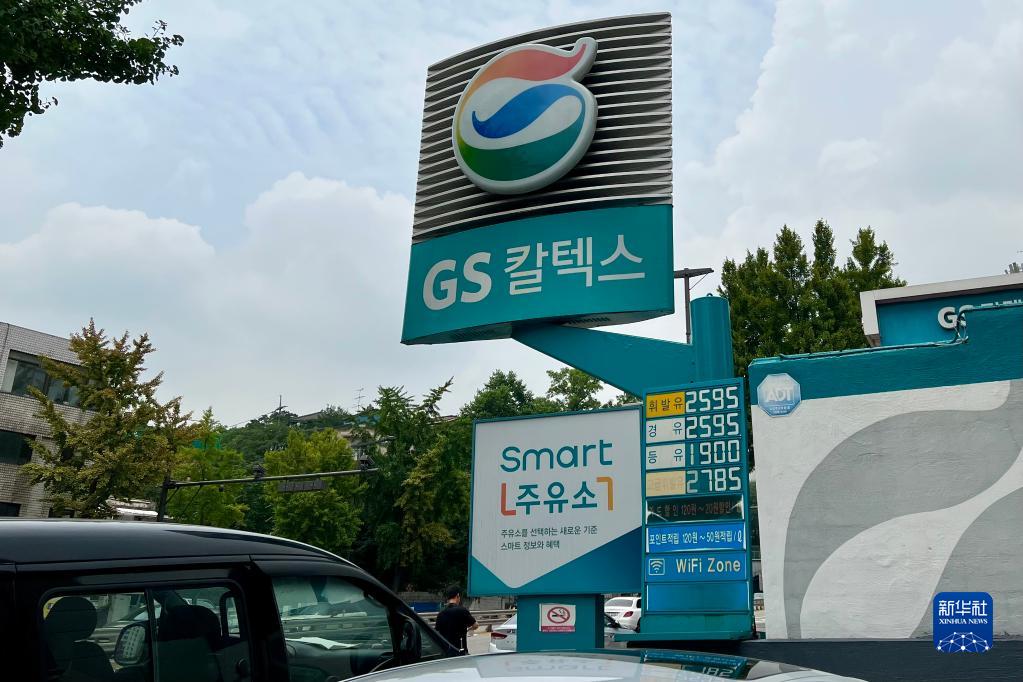 这是7月5日在韩国首尔一处加油站拍摄的油价公告板。