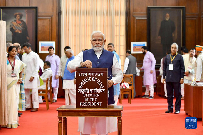 7月18日,印度总理莫迪在新德里参加总统选举投票。(新华社/印联社)