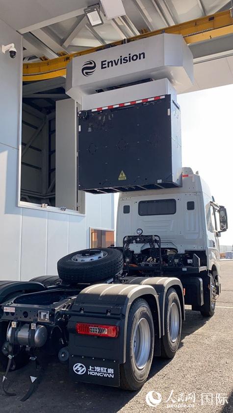 远景零碳产业园内的换电重卡项目。人民网记者 吴思萱摄