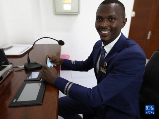 7月27日,广播员大卫在肯尼亚蒙内铁路蒙巴萨终点站工作。
