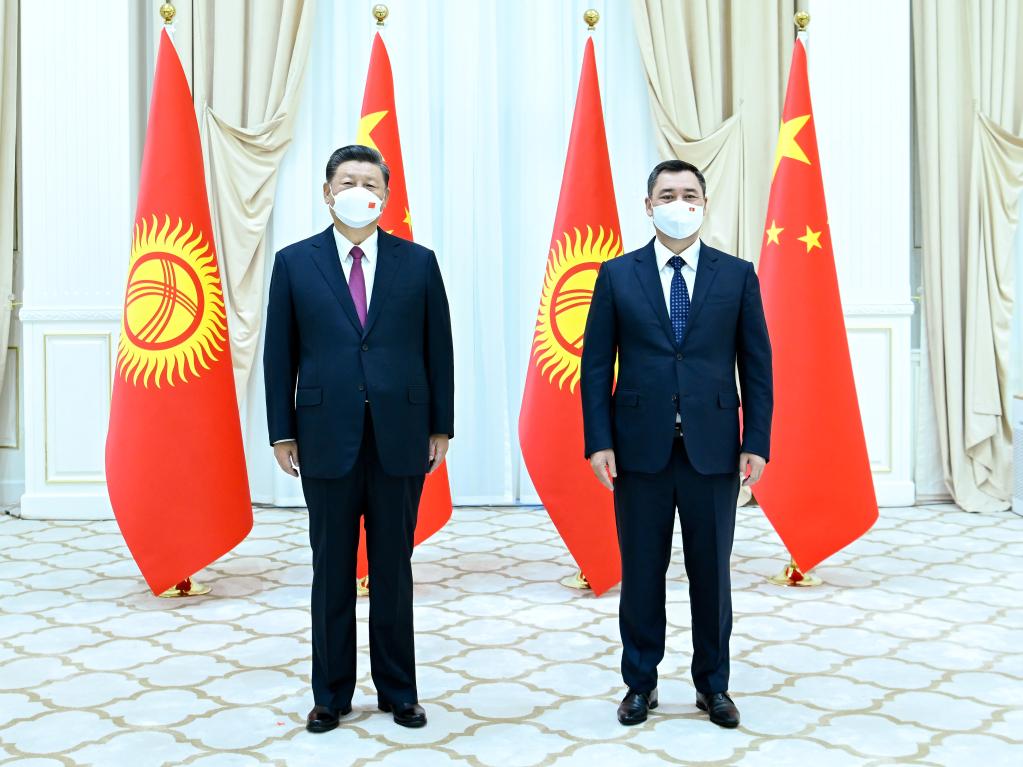 当地时间9月15日上午,国家主席习近平在撒马尔罕国宾馆会见吉尔吉斯斯坦总统扎帕罗夫。新华社记者翟健岚 摄