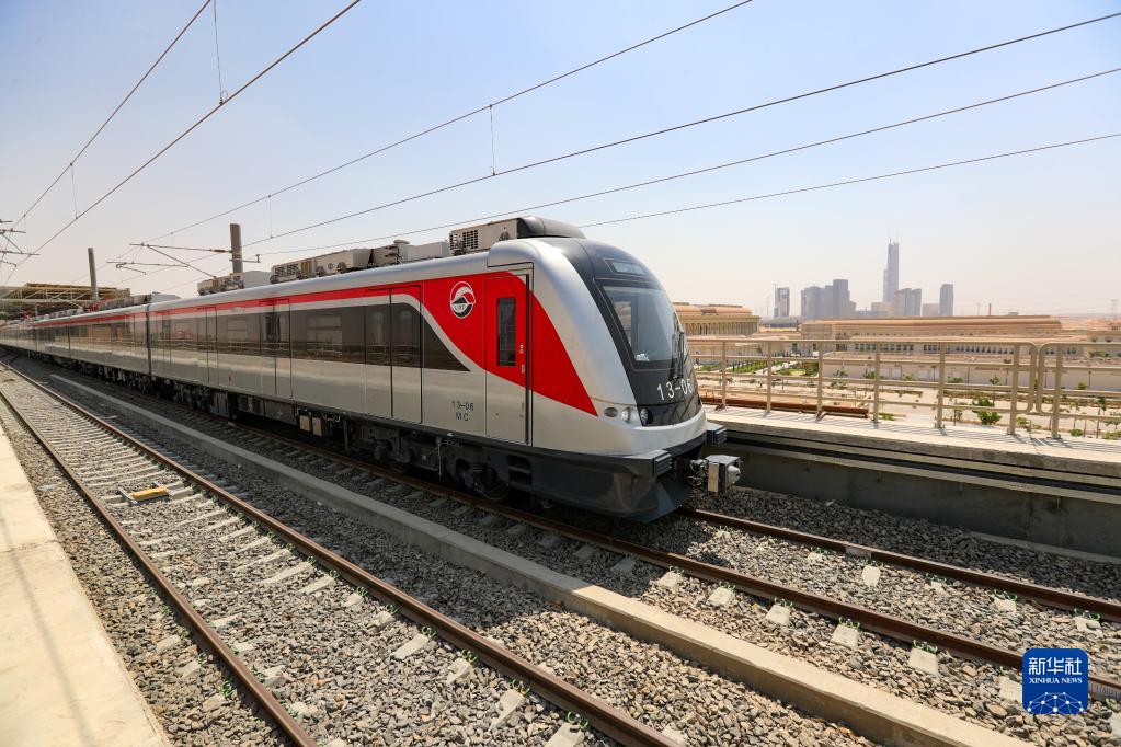 2022年7月3日,由中国企业承建的埃及斋月十日城轻轨铁路通车试运行。埃及斋月十日城轻轨铁路位于埃及首都开罗东部,是连接开罗市区与新行政首都、斋月十日城和东部沿线卫星城的重要纽带,也是中埃“一带一路”合作旗舰项目之一。新华社记者 隋先凯摄