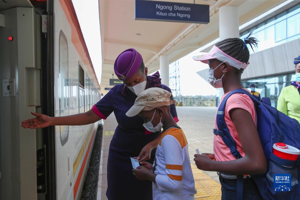 2022年3月25日,乘客在肯尼亚蒙内铁路恩贡站排队上车。2017年5月31日,由中国企业承建的蒙内铁路建成通车,乘客从内罗毕到蒙巴萨的旅行时间从平均10小时减少到5小时。五年来,蒙内铁路宛如“大动脉”,加快了肯尼亚现代化步伐,也推动了东非地区互联互通和中非合作共赢。新华社记者 龙雷摄