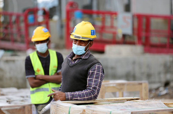 8月16日,非洲疾控中心总部大楼项目组工人在工地工作。新华社记者 汪平摄