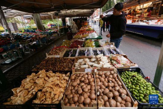 11月4日,在比利时布鲁塞尔一市场,商贩准备商品。