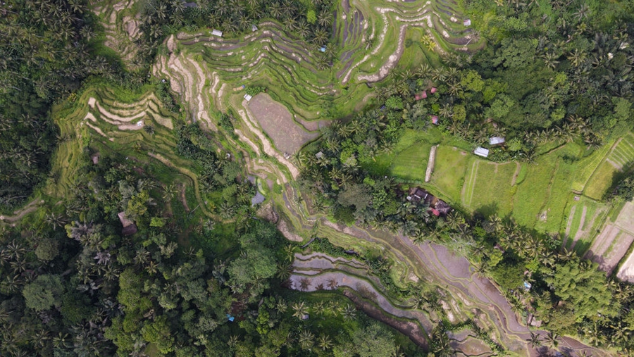 这是2021年12月20日在印度尼西亚巴厘岛拍摄的德格拉朗梯田(无人机照片)。新华社记者 徐钦 摄
