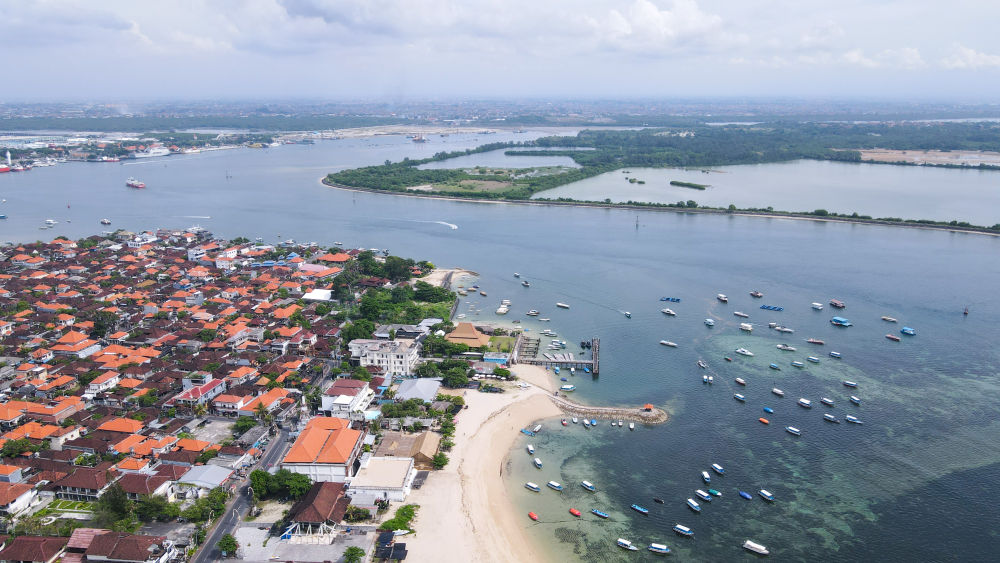 这是2022年11月12日拍摄的印度尼西亚巴厘岛丹戎伯诺阿海滩及附近风景(无人机照片)。新华社记者 徐钦 摄