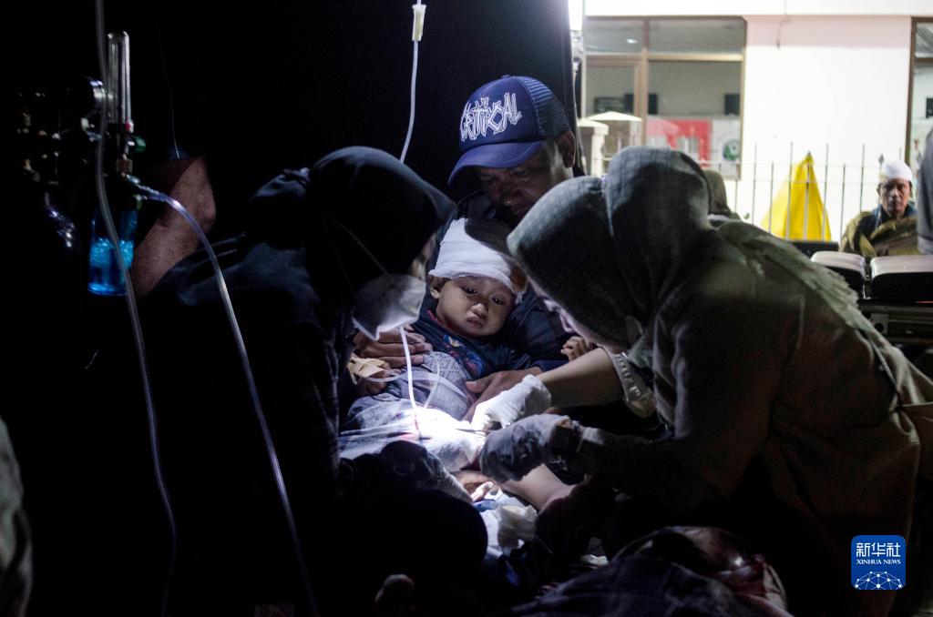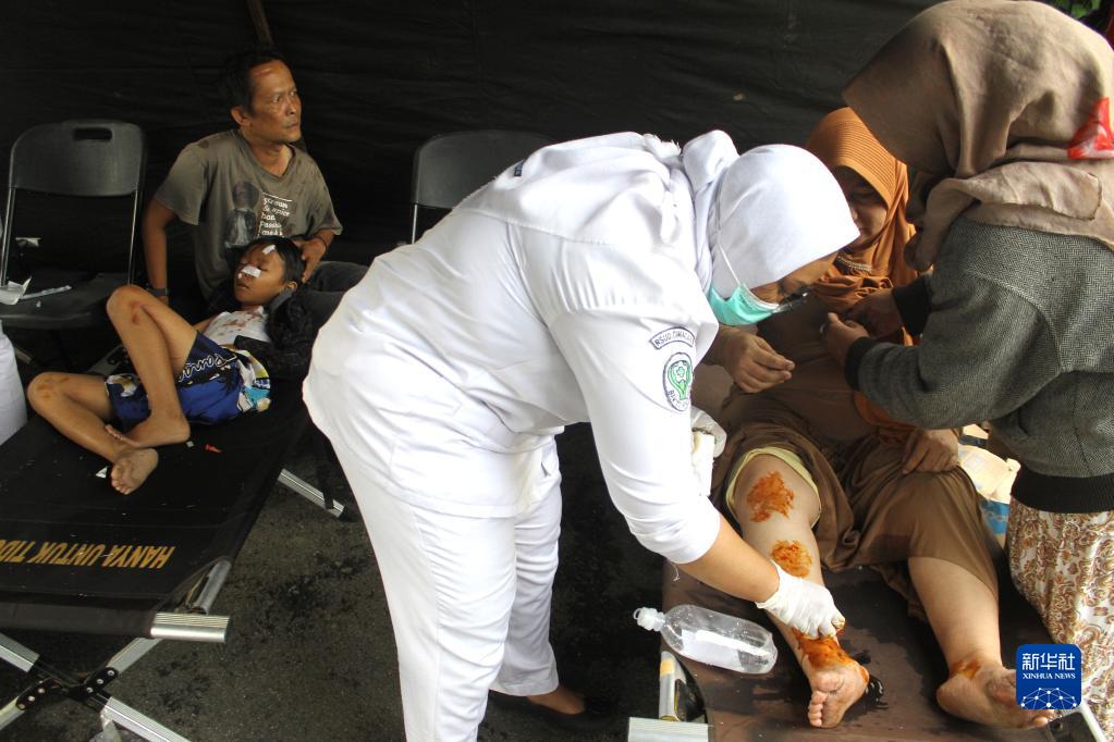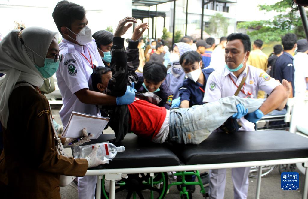 11月21日,医务人员在印度尼西亚西爪哇省展玉救治伤者。新华社发(桑迪摄)