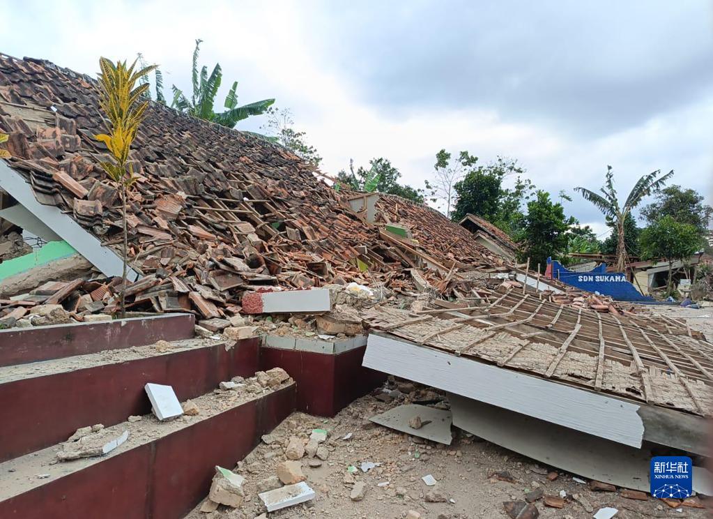这是11月21日在印度尼西亚西爪哇省展玉拍摄的被地震损毁的房屋。新华社发(印尼国家减灾署供图)
