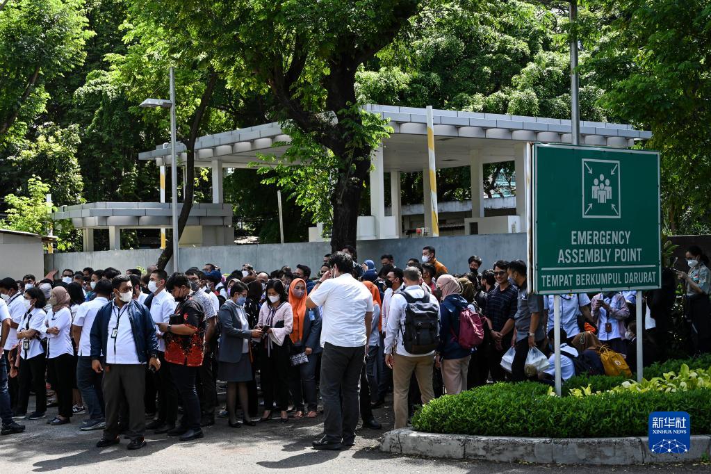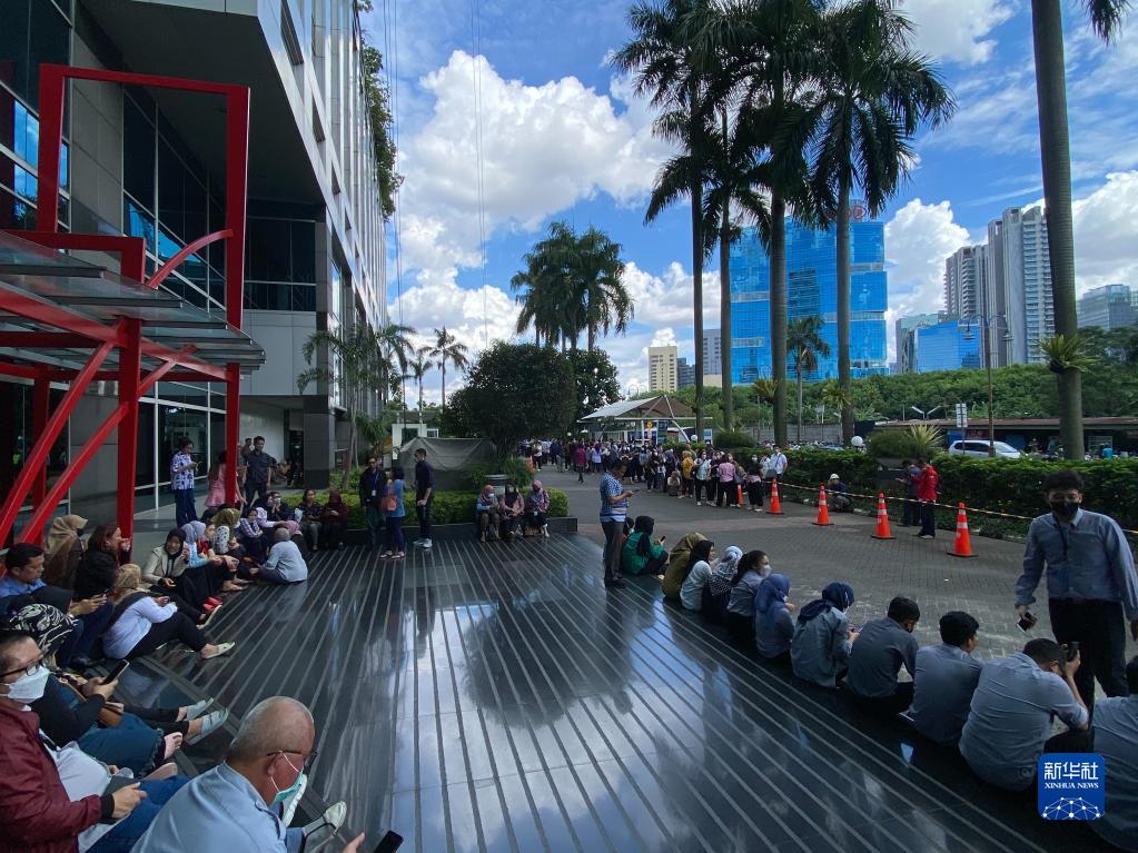 11月21日,在印度尼西亚雅加达,人们在户外开阔地带避险。新华社发(维里摄)