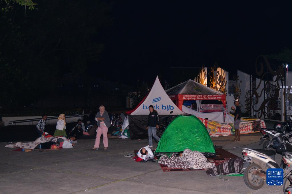 11月22日凌晨,在印度尼西亚西爪哇省展玉地区,受地震影响的人们在户外休息。新华社记者徐钦摄