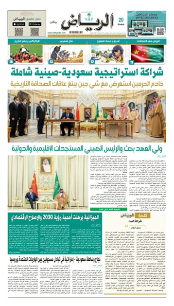 沙特《利雅得报》9日以“沙中全面战略伙伴关系”为主旨,在头版及其他多个版面报道了中国国家主席习近平与沙特国王萨勒曼、王储兼首相穆罕默德的会见及系列活动,并发表评论文章称:“沙中全面战略伙伴关系的确立将开启沙中关系的新时代,两国将在互相尊重的基础上,把各领域的合作推向更高水平。”报道还指出,“沙中两国的合作将影响世界,两国将共同努力,为人类福祉和进步提供一个基于人文发展和世界大同的范例。”