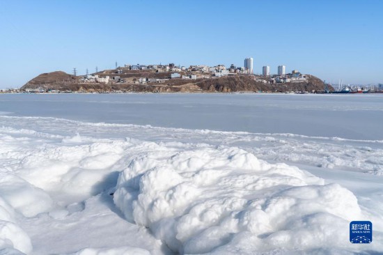 这是1月24日拍摄的俄罗斯符拉迪沃斯托克附近冰冻的海面。