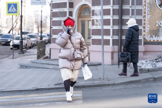 1月24日,行人走在俄罗斯符拉迪沃斯托克的街上。