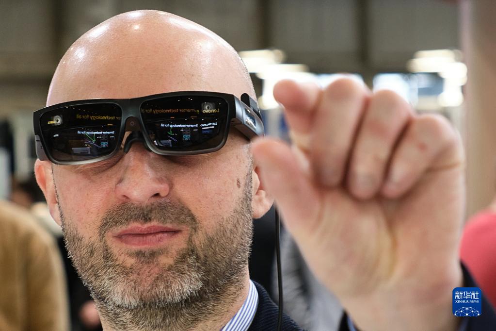 2月28日,一名男子在西班牙巴塞罗那举行的2023世界移动通信大会上体验虚拟现实技术。