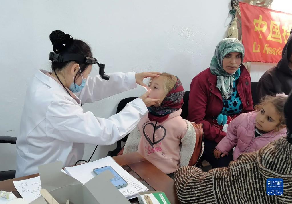 1月19日,在摩洛哥舍夫沙万,中国援摩医疗队的耳鼻喉科医生高艺玲为当地群众义诊。