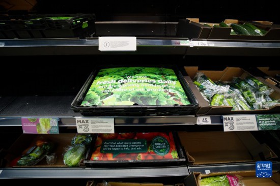 3月2日,在英国曼彻斯特,一家超市的蔬菜货架出现缺货。