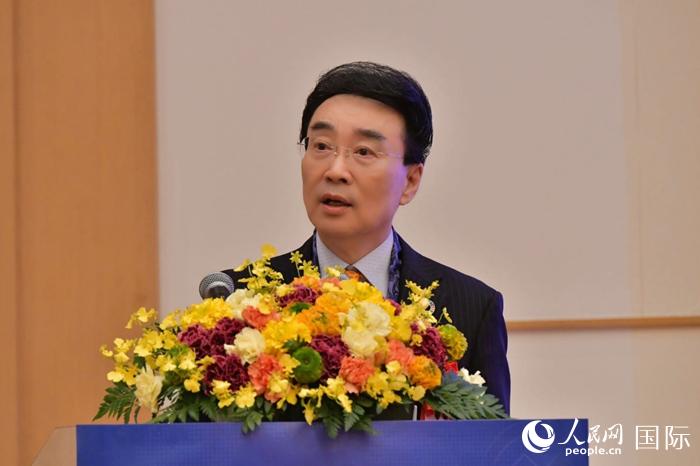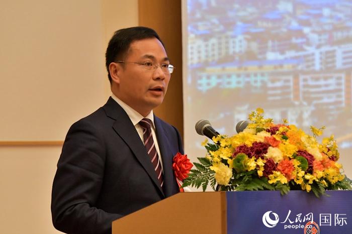 中国驻日本大使馆经济商务公使代表申宇致辞。人民网 滕雪摄