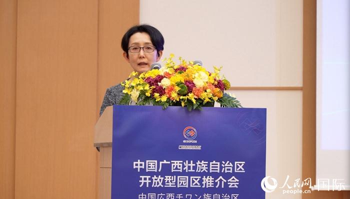 中国(广西)自由贸易试验区工作办公室专职副主任白岚做主题推介时,向日本经济产业界分享了广西的四大发展机遇。