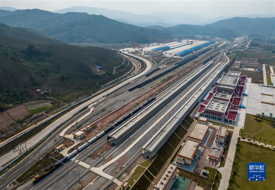 2023年2月22日拍摄的中老铁路磨憨站(无人机照片)。新华社记者 江文耀 摄