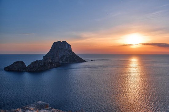 这是4月9日在西班牙巴利阿里群岛伊维萨岛拍摄的日落。新华社记者孟鼎博摄