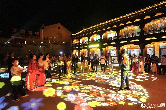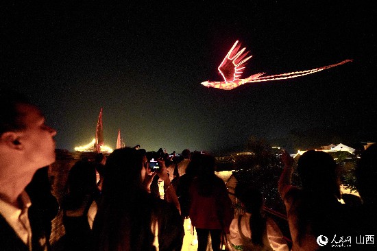 图为郭峪古城灯光秀表演。人民网 卢鹏宇摄