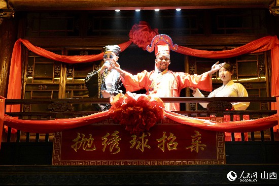 图为抛绣球招亲。人民网 卢鹏宇摄