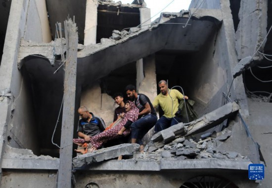 10月19日,在加沙地带南部城市汗尤尼斯,人们在遭以色列空袭后的建筑废墟中救援伤者。
