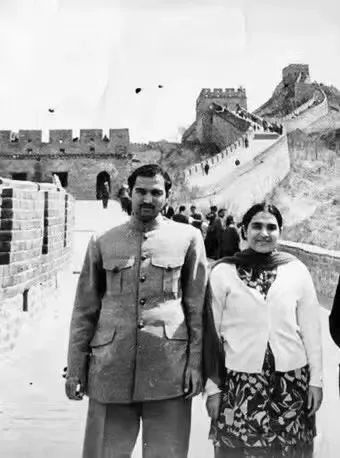 1972年, 穆沙希德(左)和姐姐一起参观长城。