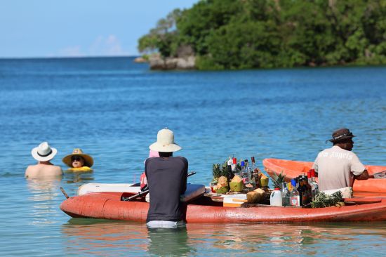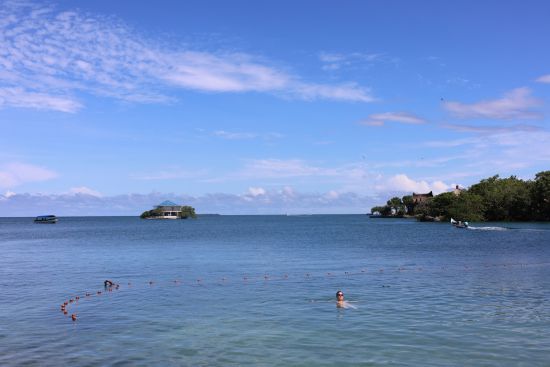 游客在卡塔赫纳港口的海水中游泳。唐薇 摄
