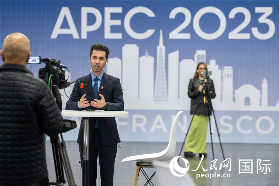 当地时间11月16日,美国旧金山,在APEC国际媒体中心,媒体记者忙碌工作。