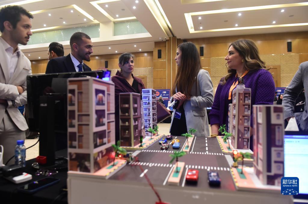 12月12日,观众在科威特哈瓦利省举行的工科学生毕业作品展上观看一个人工智能交通信号灯项目作品。