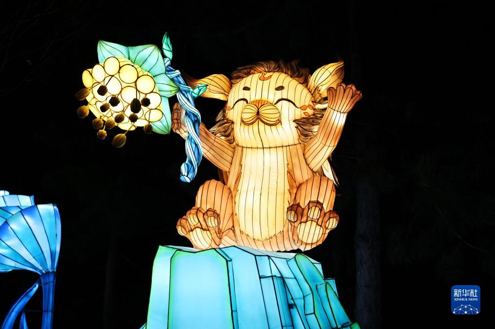 这是12月14日在法国巴黎风情园举办的“山海有灵”法国豫园灯会上拍摄的花灯。