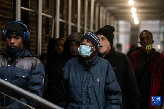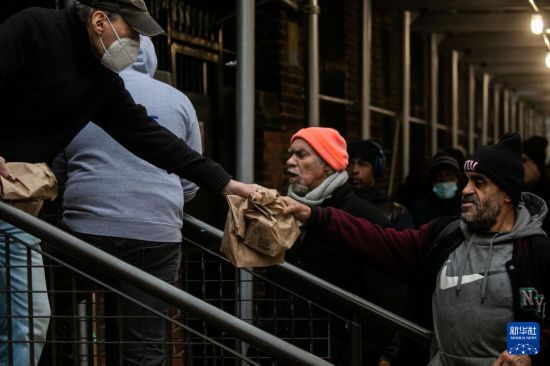 12月24日,在美国纽约,民众在“纽约公共食品储藏室”排队领取免费食品。新华社发(郭克摄)