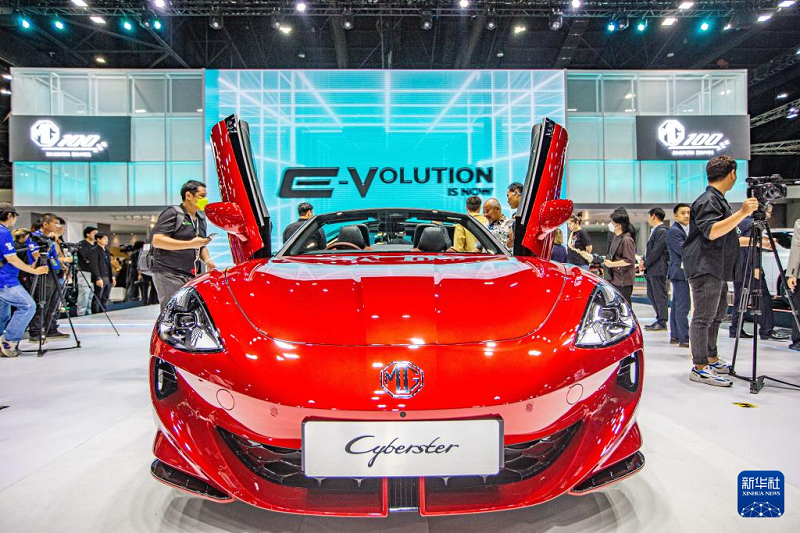 3月27日,观众在泰国曼谷国际车展上参观MG Cyberster汽车。