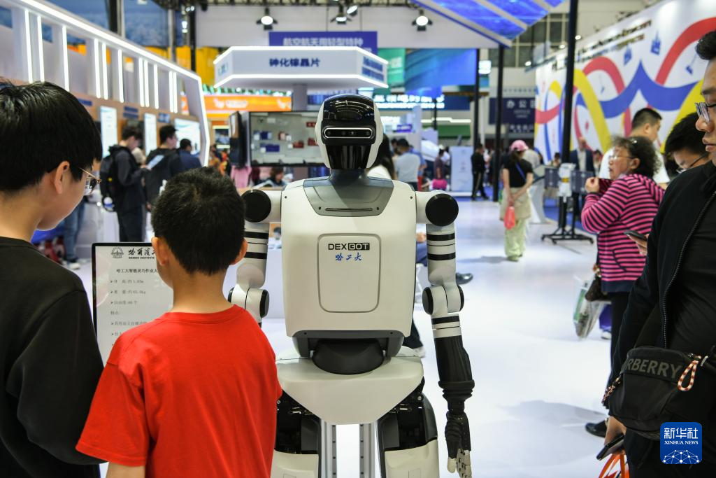 5月18日,这是在第八届中俄博览会展馆内展出的一款机器人。