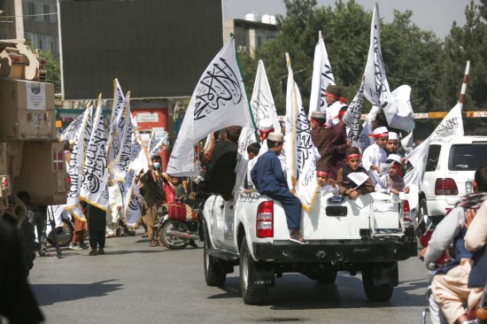 连日来,喀布尔全城街巷挂起代表阿富汗临时政府的白色旗帜,庆祝塔利班执政三周年。市区多个街口悬挂着写有“阿富汗人民战胜美国”“庆祝自由”字样的标语。大批塔利班武装人员和民众高呼口号,一辆辆插满白色旗帜的塔利班皮卡车在人们的欢呼声中呼啸而过。