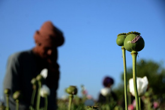 2022年4月3日,农民在阿富汗坎大哈一处罂粟田采摘罂粟。阿富汗临时政府当天宣布,该国境内禁止罂粟种植及其相关产品交易。新华社发(萨瑙拉摄)