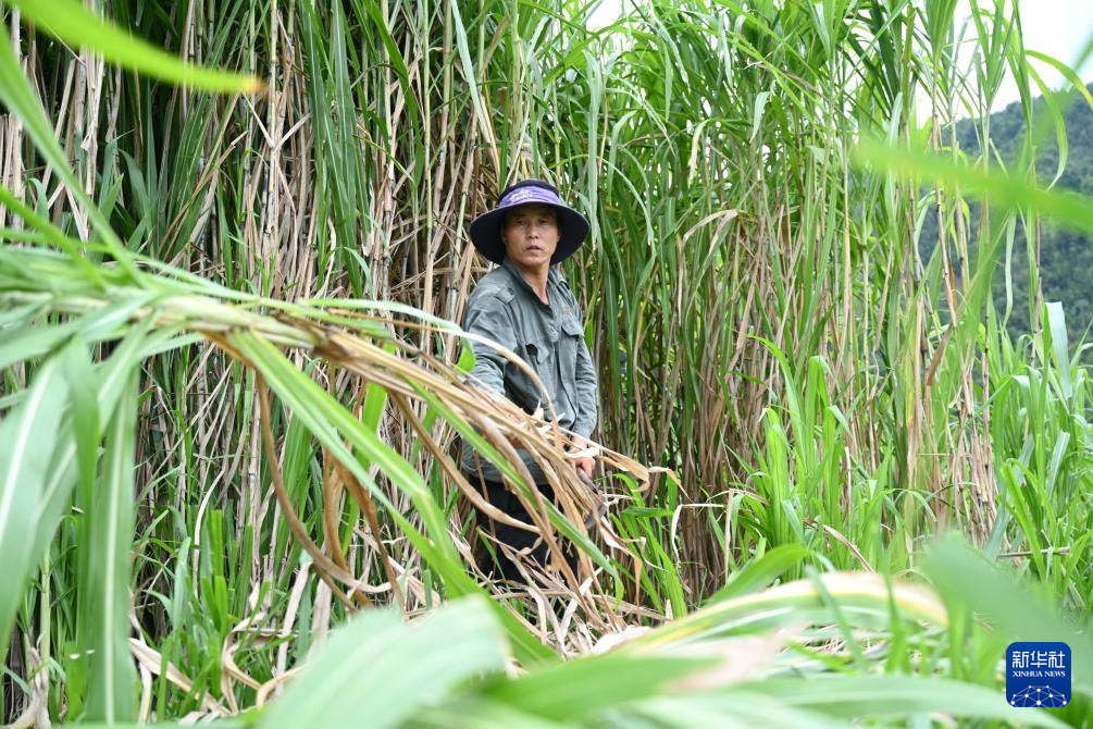8月21日,工人在福建省永泰县清凉镇北斗村的“珍农菌草富泉羊循环产业示范基地”收割菌草。