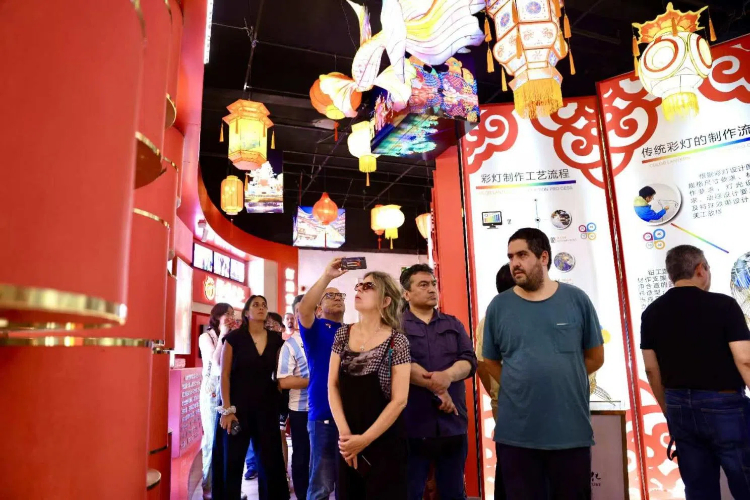 走走停停,边看边拍,外国友人纷纷举起手机,与身边的彩灯合影留念。8月31日,2024年“一带一路”媒体合作论坛拉美媒体采访团来到四川省自贡市彩灯企业参观走访,感受花灯满缀中饱含的历史底蕴。