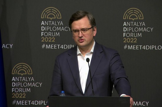 2022年3月10日,乌克兰时任外长库列巴在与俄罗斯外长拉夫罗夫(未在画面中)会谈后召开新闻发布会。新华社发