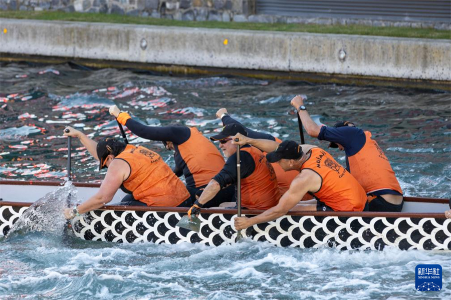 5月24日,人们在南非开普敦参加龙舟比赛。新华社记者 王雷 摄